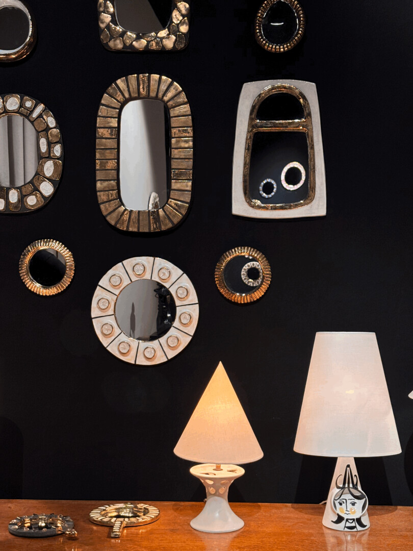 Spécialisés dans la céramique française du XX? siècle, et plus particulièrement dans le travail de l’artiste française Mithé Espelt, dont nous présentons un ensemble exceptionnel de miroirs et de coffrets.