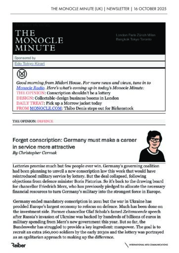 THE MONOCLE MINUTE (UK) – NEWSLETTER – 16 OCTOBER 2025